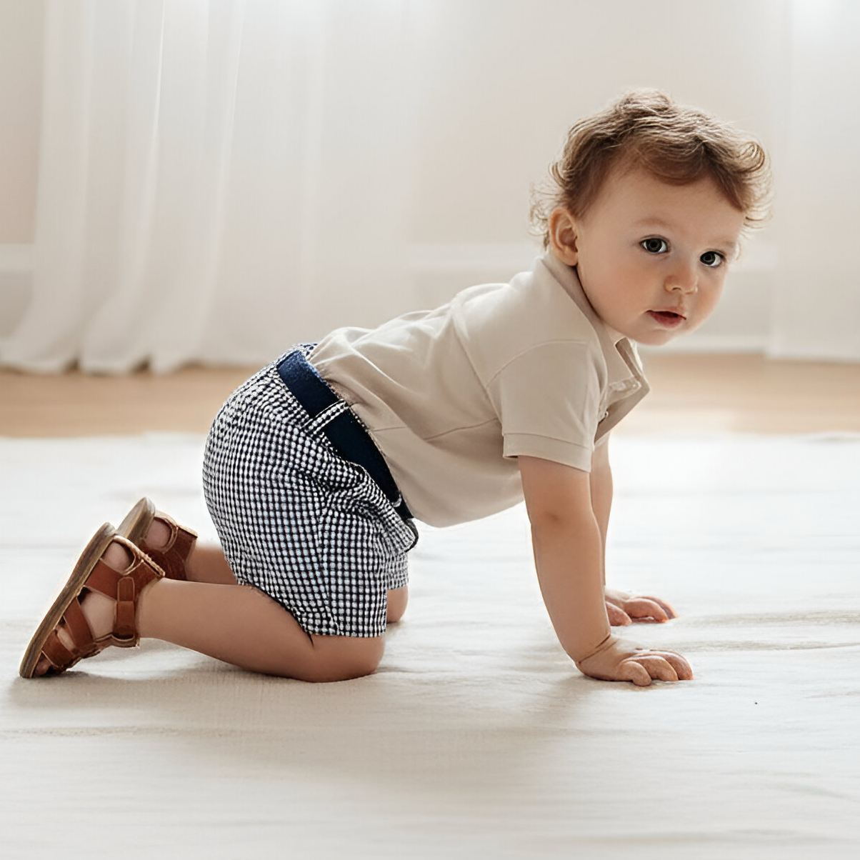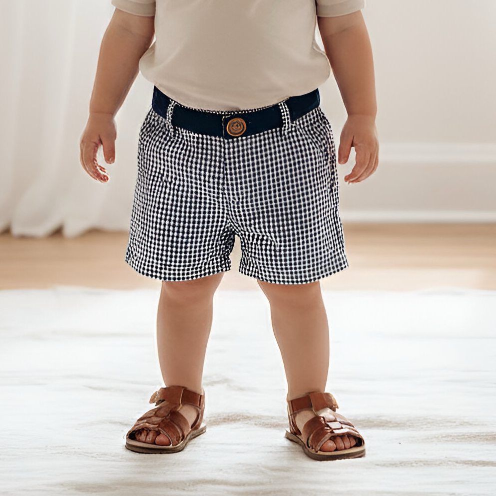 A smart pair of shorts in a tailored style that go perfect with a casual tee, polo or dress shirt. These dressy and stylish shorts are perfect for weddings or family photo shoots, offering a polished and sophisticated look for your baby boy. Made from high-quality cotton, these shorts are comfortable to wear and easy to move in, making them ideal for any special occasion.