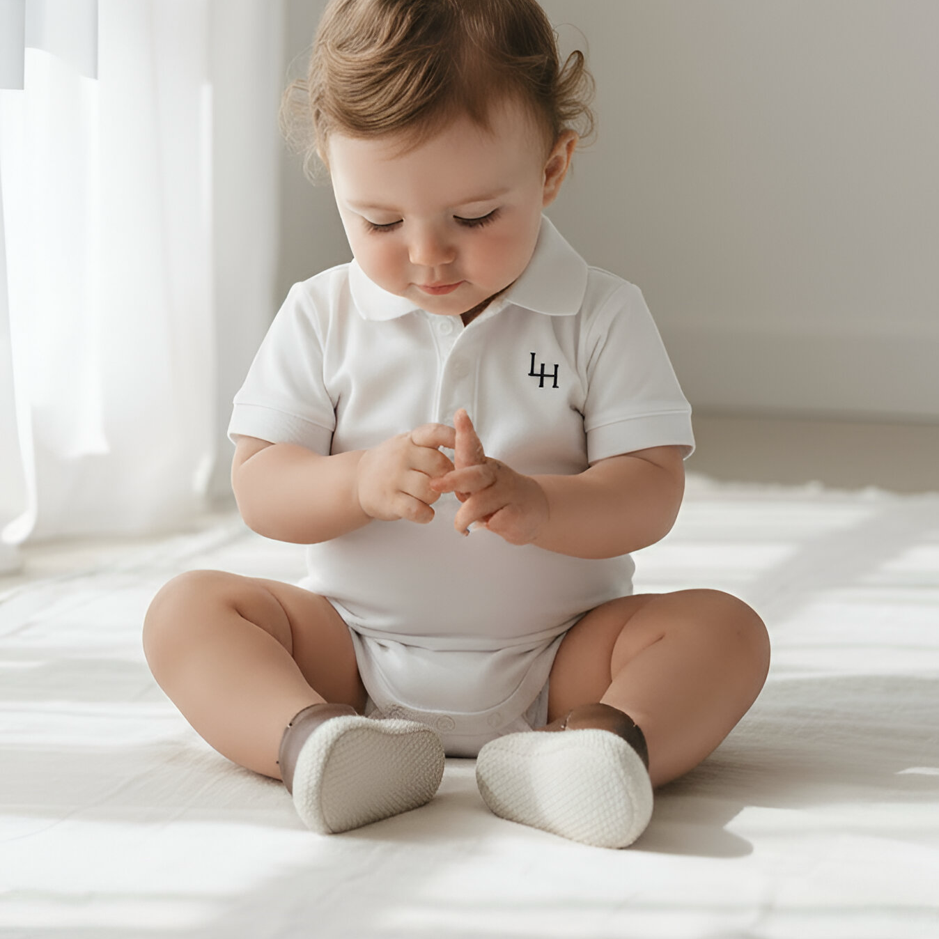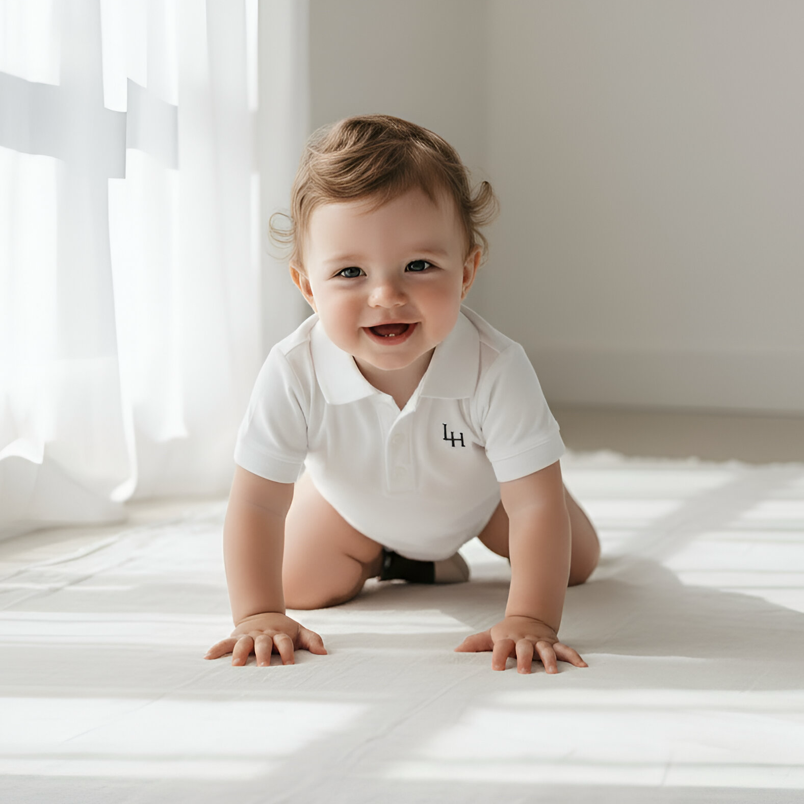 Dress your little one in style with this charming collared shirt romper in pique cotton. Made from stretch cotton elastane, this romper offers a comfortable and flexible fit for your baby boy to move and play in. The button fastening crotch add convenience and ease to dressing and changing. Whether you're dressing him up for a special occasion or simply want a cute and stylish outfit for everyday wear, this romper is the perfect choice for your baby.