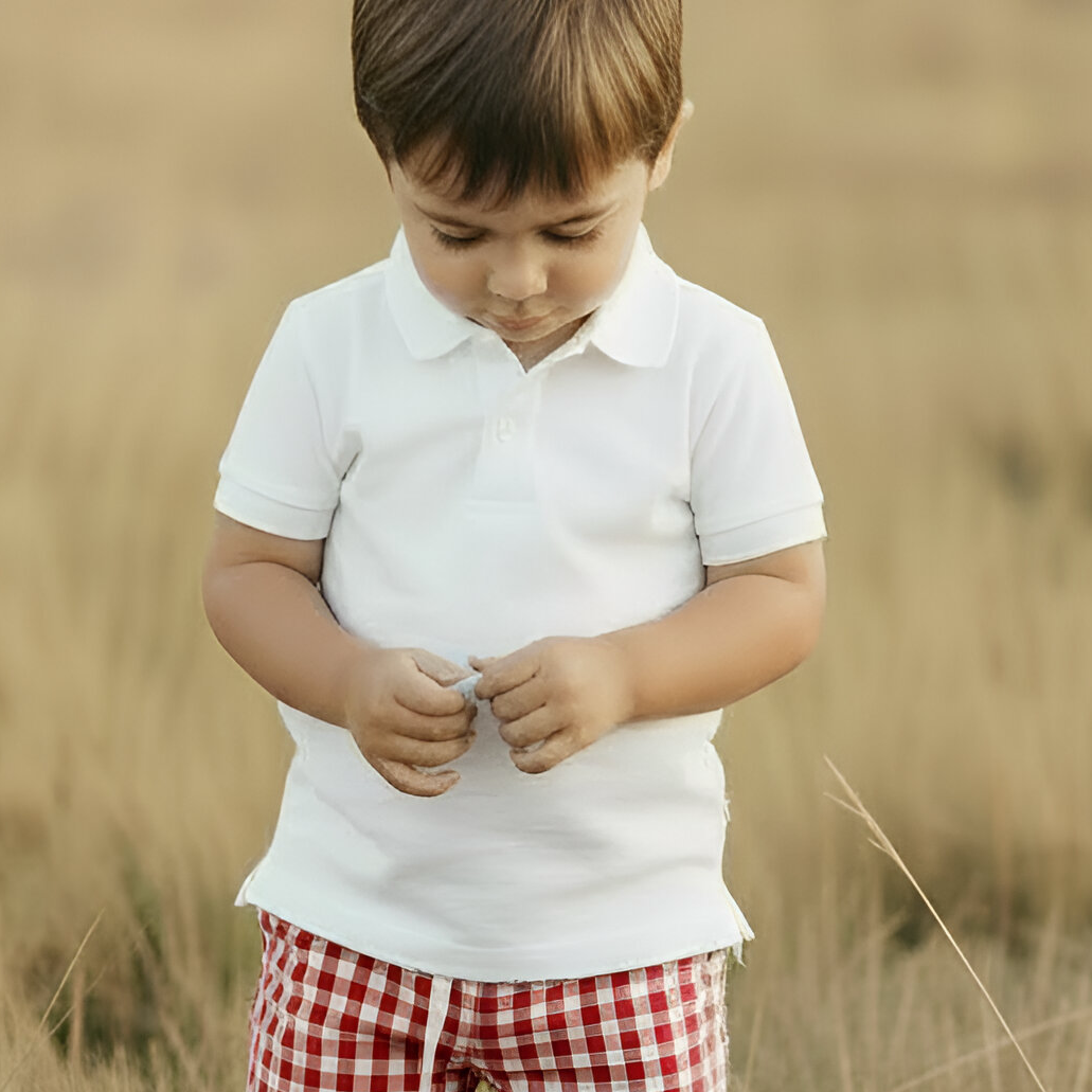 A fresh country classic for little boys. Easy to wear and endlessly versatile, this white polo is perfect for warm days outdoors, family gatherings or heading into town. A timeless staple made to be worn again and again.