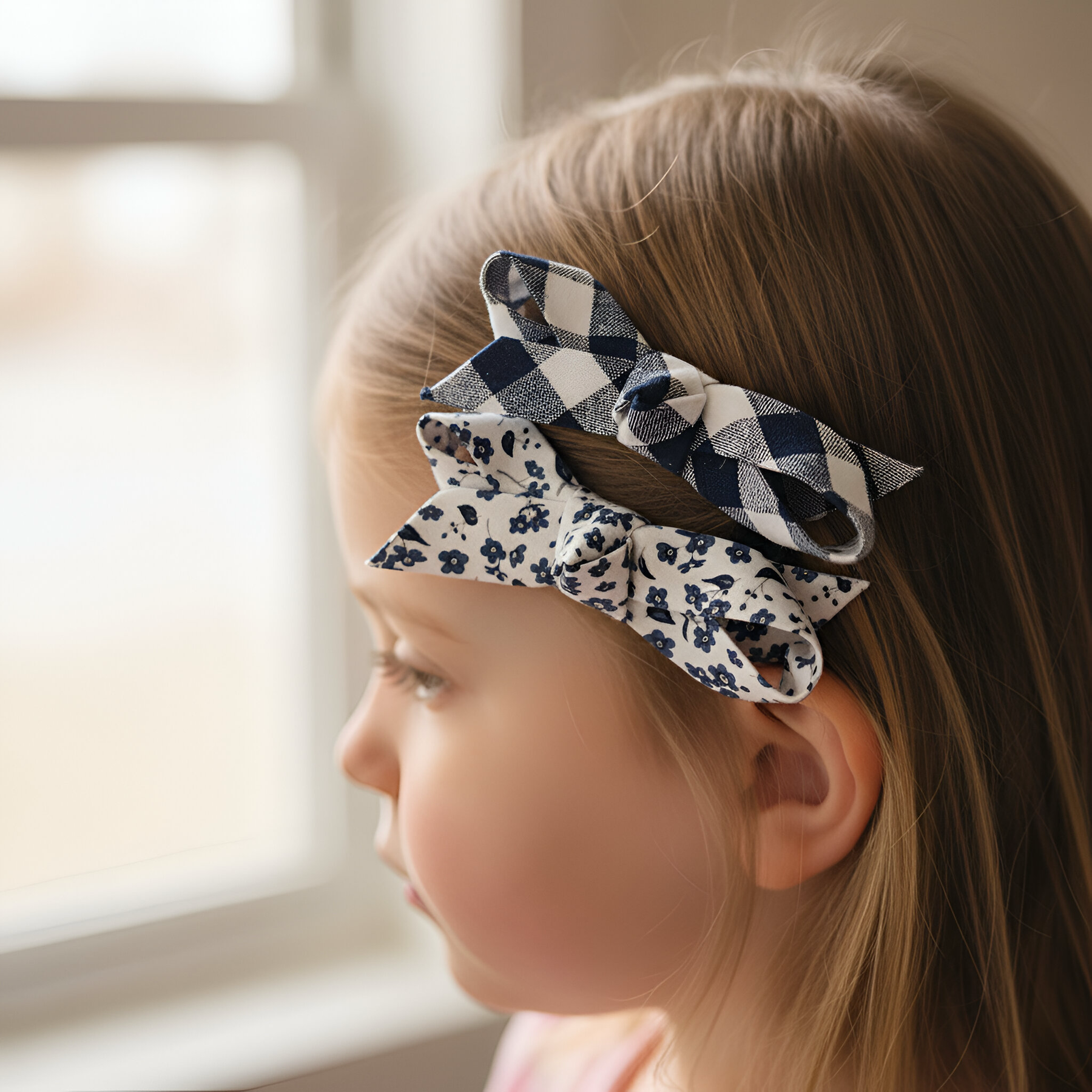 Girls Clips 2 Pack - Navy Check/Navy Daisy